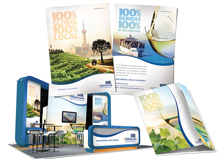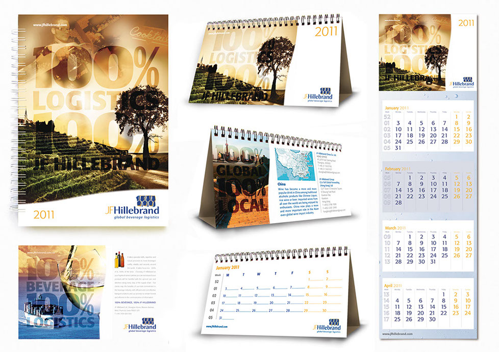 The corner curve element was replaced with the white curve at the bottom. This was also the start of the image composition that then became a very distinguished look for JF Hillebrand in the drinks logistics industry.