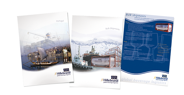 The logo and text housing element was also updated with a blue curve. This not only enhanced the ocean reference, but also became a very recognisable element in the JF Hillebrand visual language.